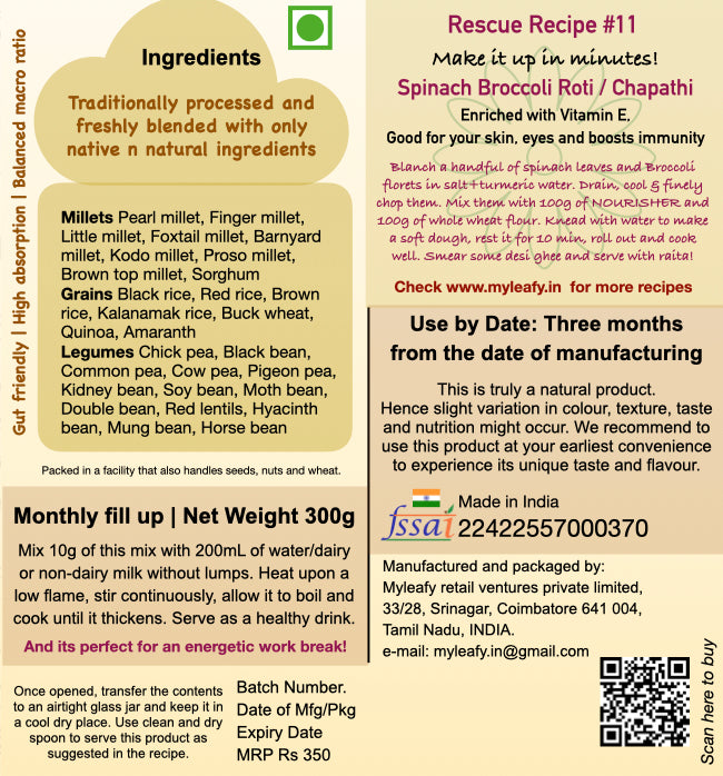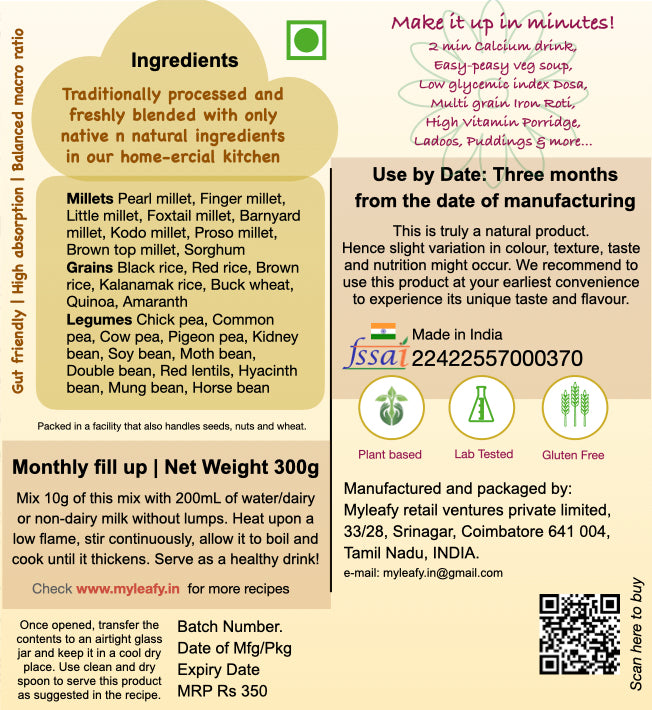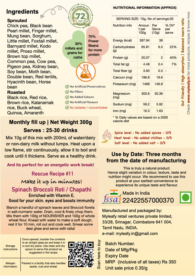 - Wholesome - Balanced macro ratio with 20% Complete proteins, Bio-available and Bio-accessible nutrients, negligible anti-nutrients, Plant based and Gluten free.